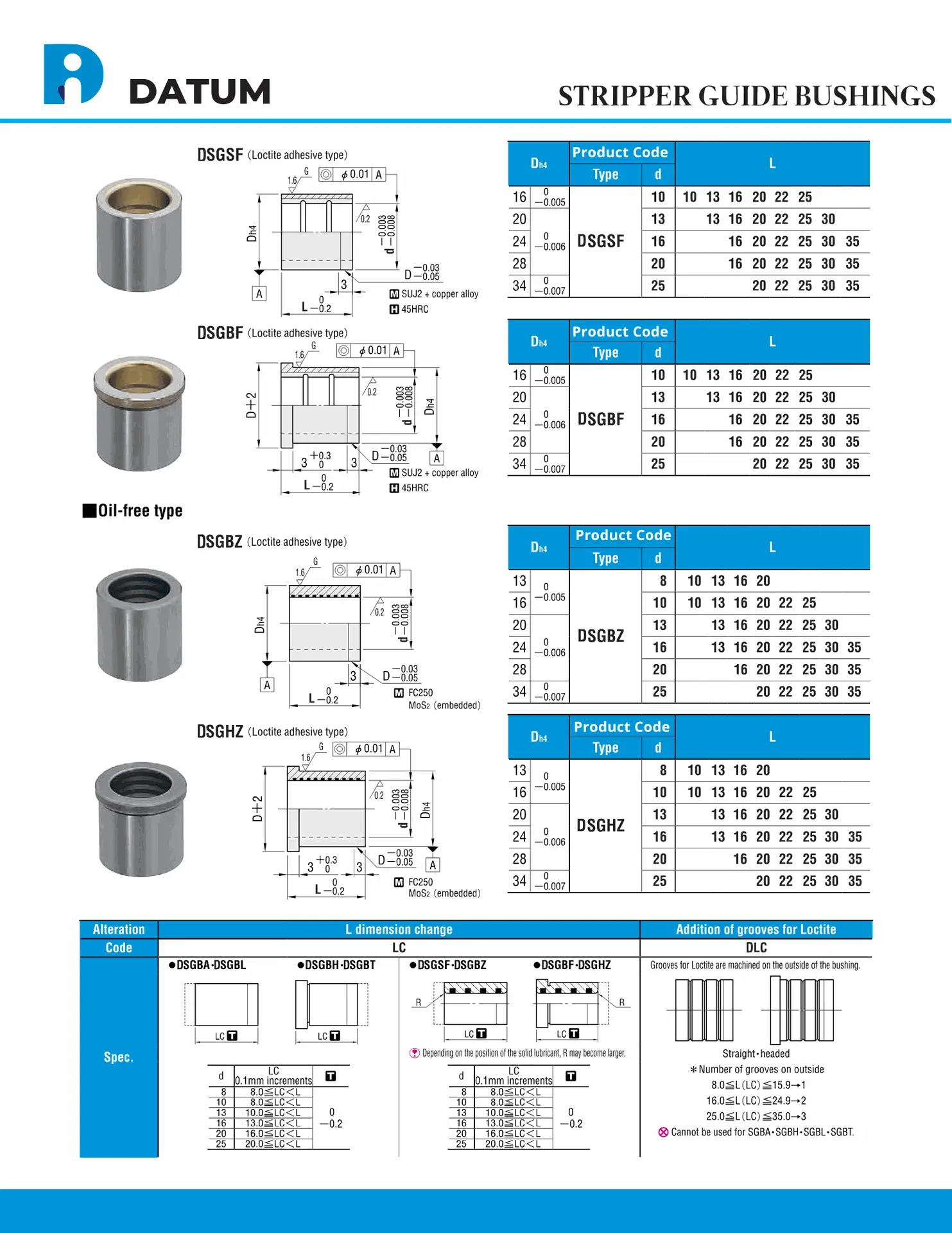 Perfect for applications across industries such as automotive, aerospace, electronics, and general manufacturing, these bushings are engineered to fit precisely within the die sets, guaranteeing the proper positioning of the stripper plate during each press cycle. The oil-free types enhance efficiency by minimizing lubrication needs, reducing maintenance, and increasing productivity.